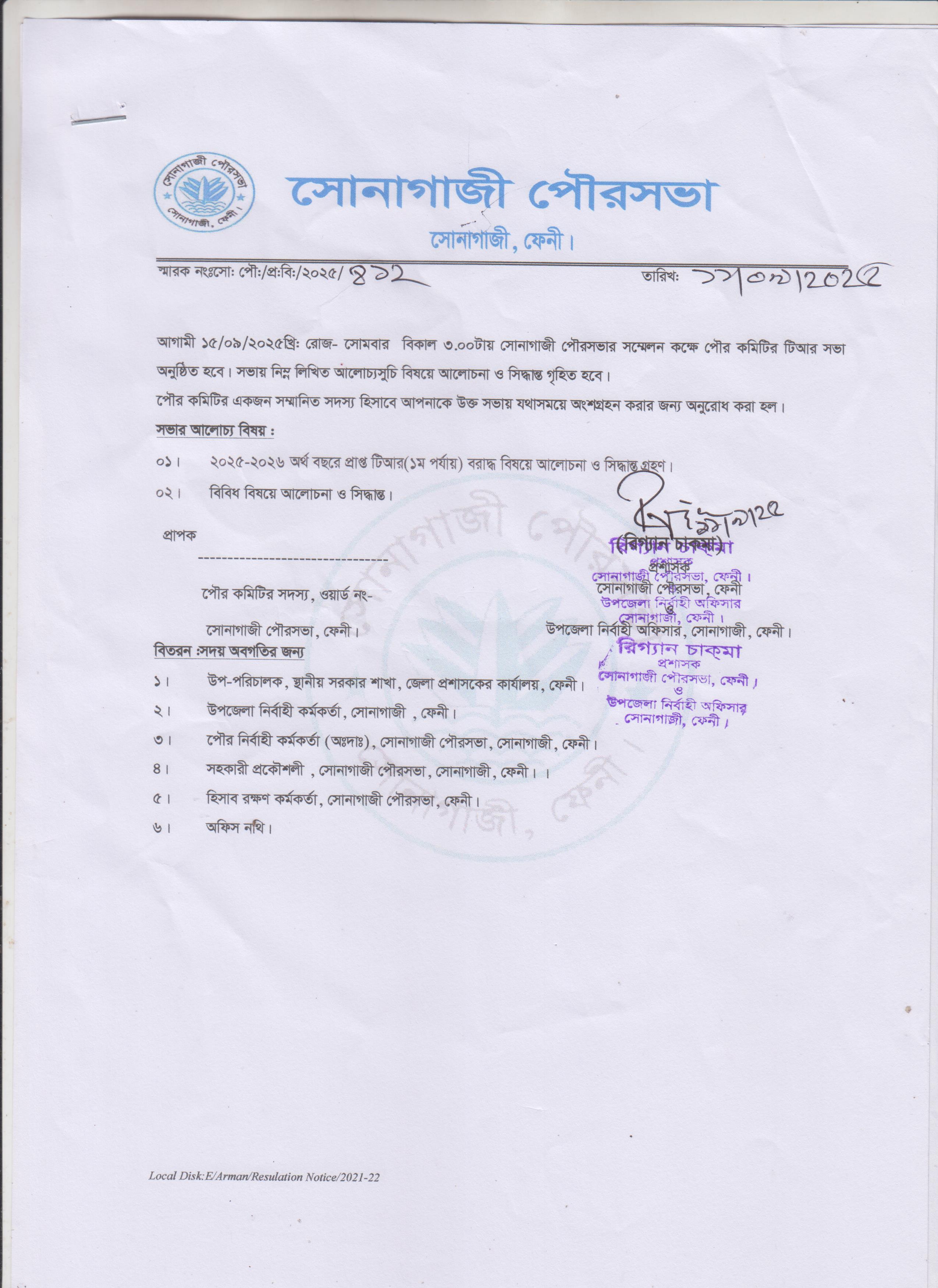 টিআর সংক্রান্ত সভা